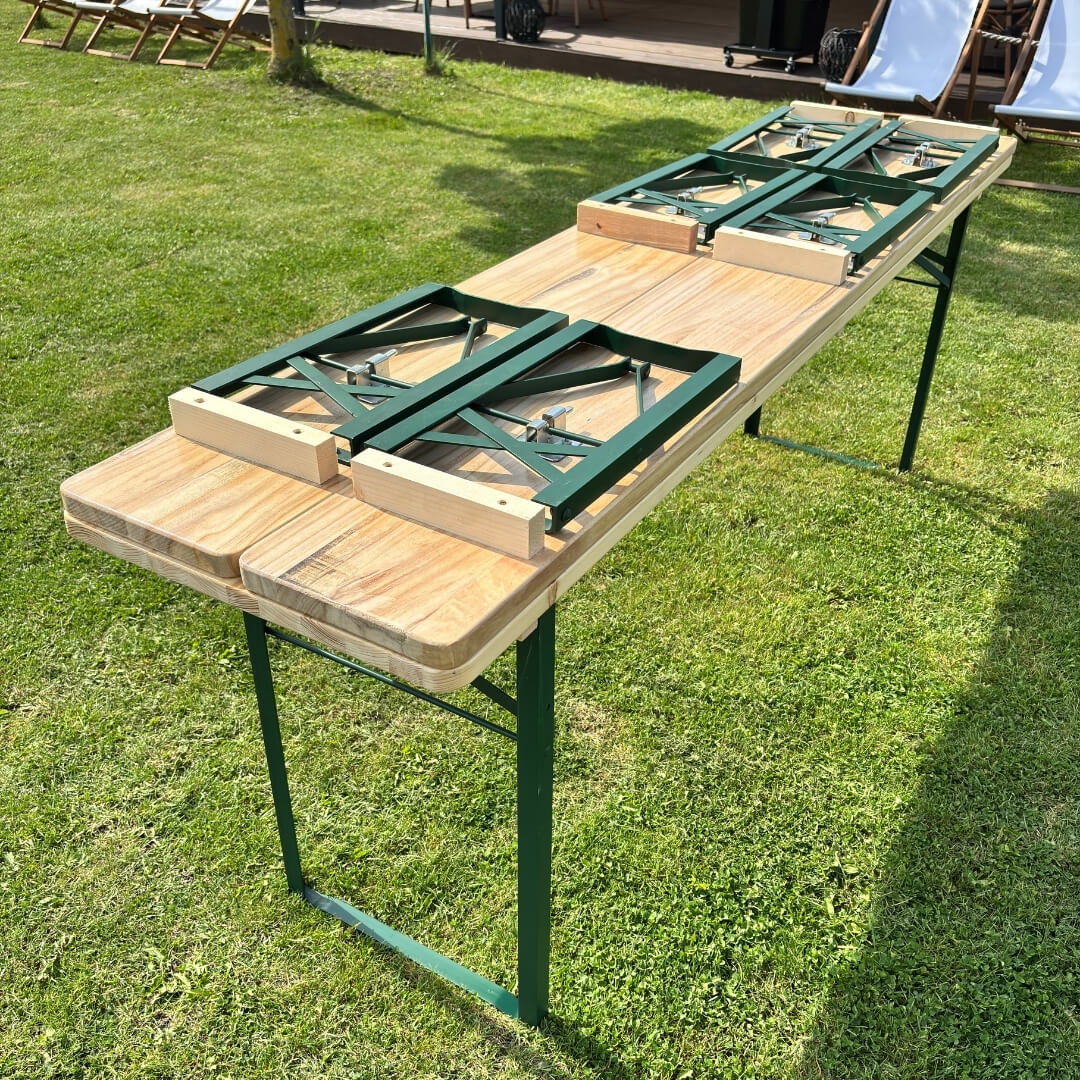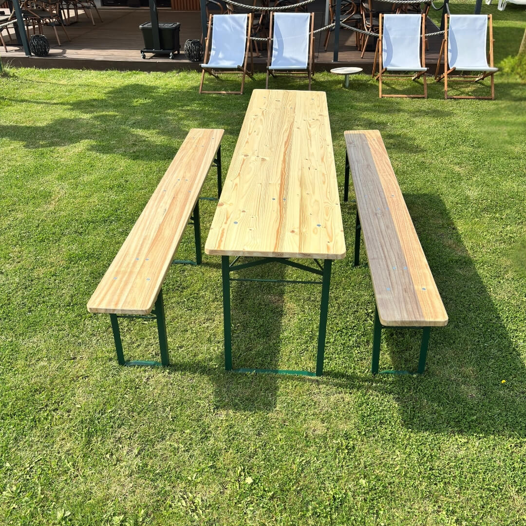 Hľadáte stabilný a odolný pivný set vhodný na intenzívne využívanie? Pivný set PROFI 220 cm je skvelou voľbou pre festivaly, veľké podujatia, pivné záhrady či gastronomické prevádzky. Vyrobený prevažne na Slovensku s použitím masívneho smrekového dreva a zosilnenej kovovej konštrukcie, ponúka výnimočnú pevnosť, spoľahlivosť a dlhú životnosť.