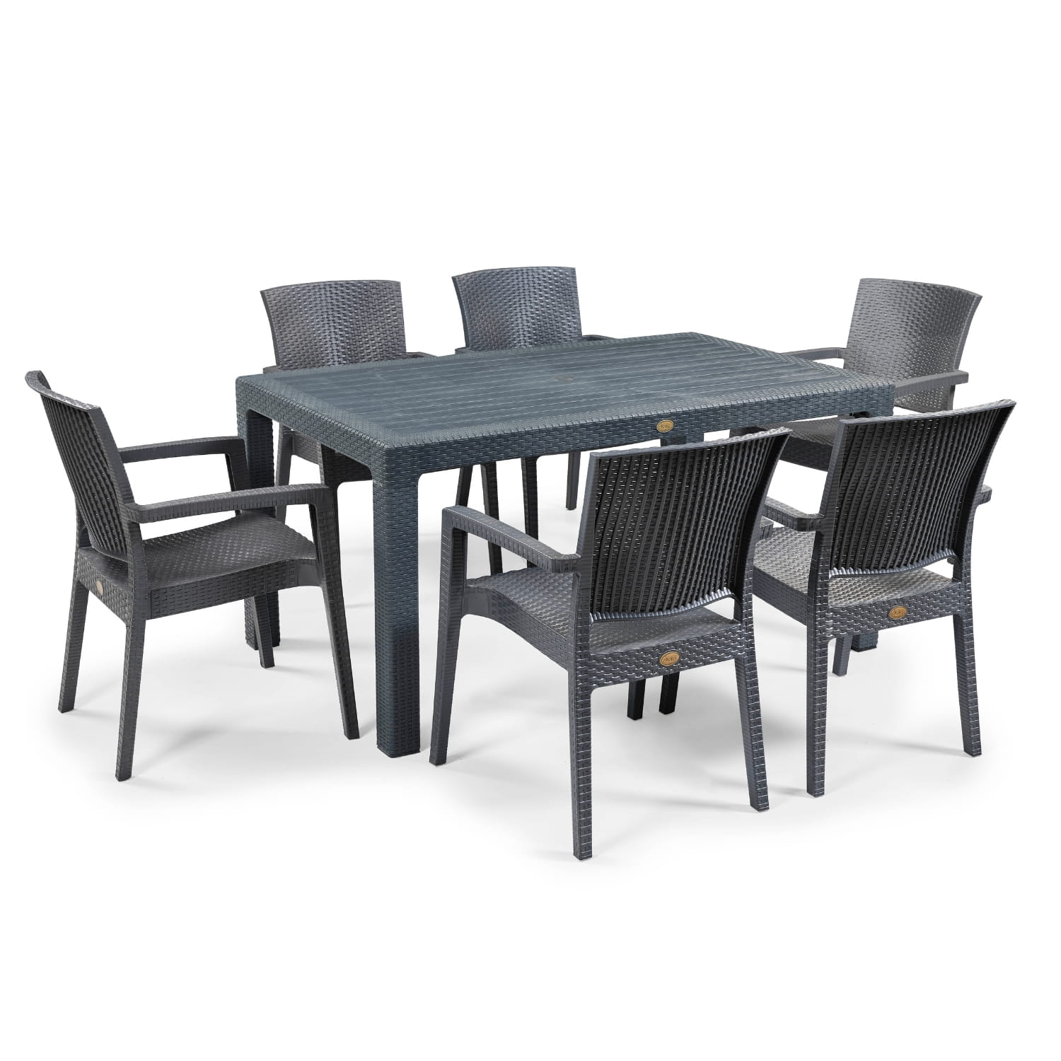Tento model sa výborne hodí do moderných aj klasickejších priestorov a ľahko sa kombinuje s ďalším exteriérovým nábytkom. Antracitová farba dodáva stolu elegantný a univerzálny charakter, ktorý krásne zapadne na terasu, do záhrady aj do komerčných exteriérov.